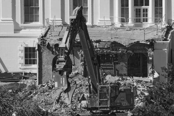 Las topadoras que arrasaron el ala este de la Casa Blanca para hacer espacio para el nuevo salón de baile…